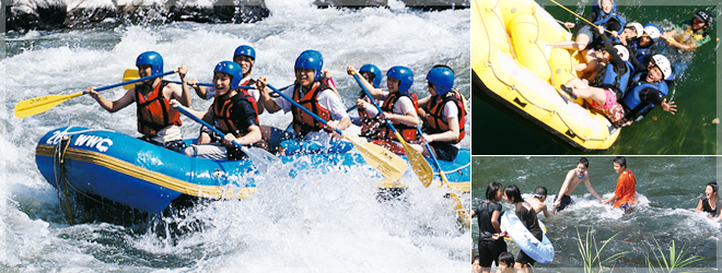 郡上は水のまち。夏になると、郡上の子どもたちは当たり前のように川遊びをして成長していきます。泳いだり、もぐったり、飛び込んだり、魚を捕ったりと、時間を忘れて夢中で遊びます。近年、若者にはカヌーやラフティングも人気です。